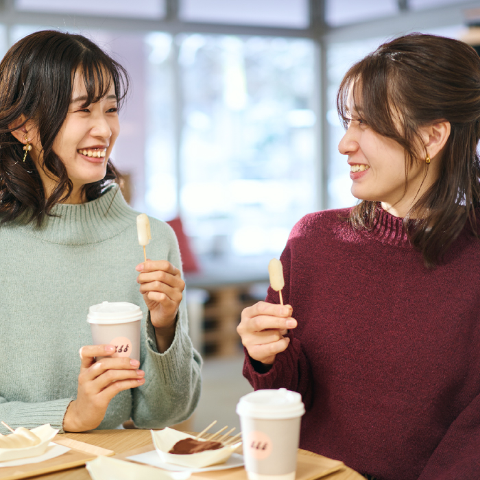 お参りの後は、神様からのおすそわけ「お下がり」のお団子でひと休み。これは「直会(なおらい)」といって、昔から伝わるお参りのしめくくり。ハレ晴れスタンドでは、お団子の他にもソフトクリームやコーヒーなどを揃えてお待ちしています。